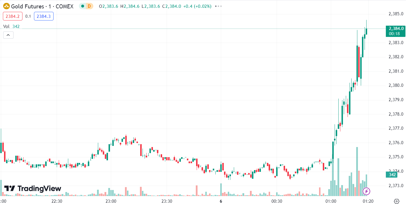 This reduced the opportunity cost of holding gold, pushing prices up over 1%. Spot gold peaked at $2357.44 and closed up 1.23% at $2354.60 per ounce.