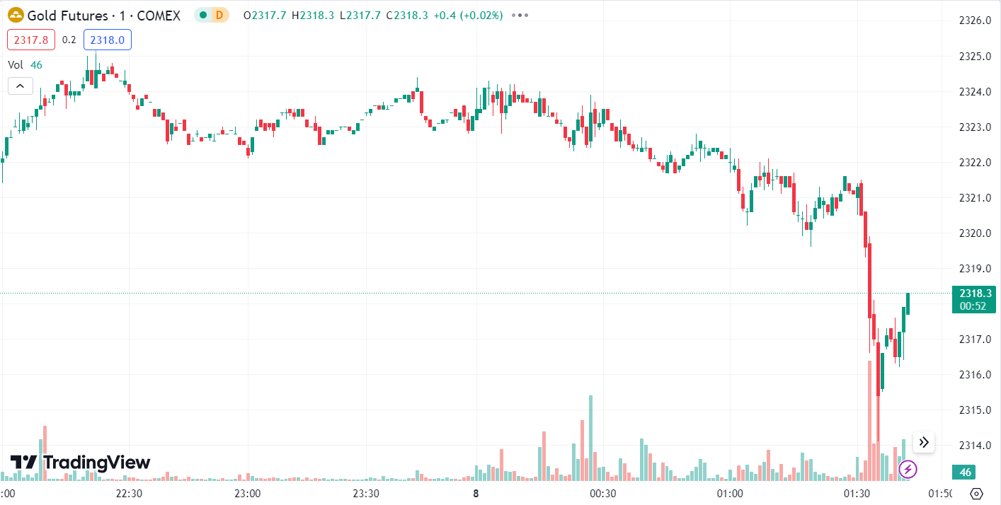 Ahead of the US session, it swiftly broke below the USD 2309 level before stabilizing and rebounding. After 23:00, it faced resistance around the USD 2323 level, leading to a retreat and closing with oscillations.