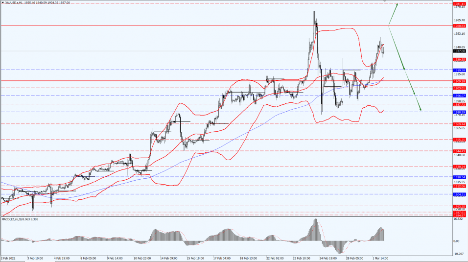 Gold extended its rally yesterday, with spot gold rising more than 2% to break the 1950 barrier late in the New York market. The market was worried that global economic growth would face increasing risks due to sanctions against Russia.