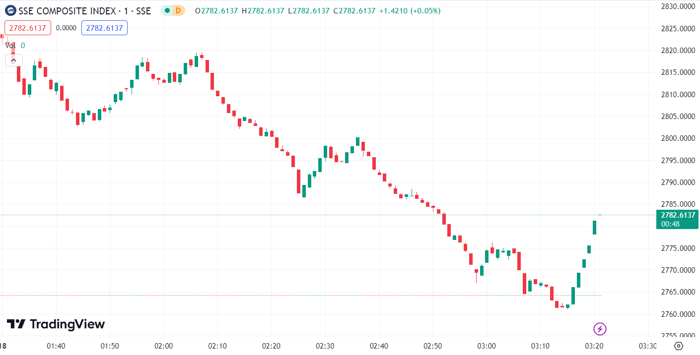 Notable stock movements included gains in the tech sector, with Baidu rising over 3%, and gains for Netease, Meituan, and Alibaba by nearly 2%. JD.com saw a reverse trend, dropping nearly 1%.