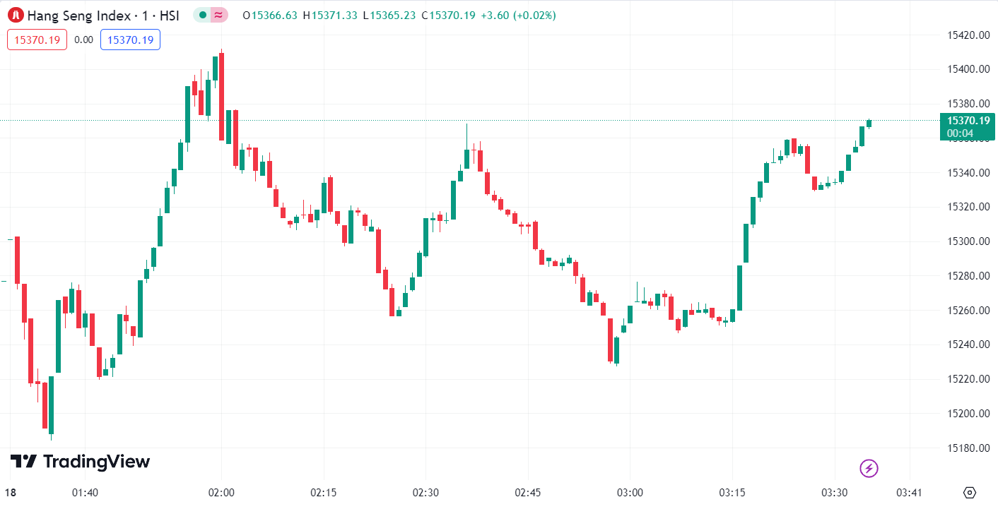 - Hang Seng Index (HSI) increased by 0.64%, closing at 15,374.34.