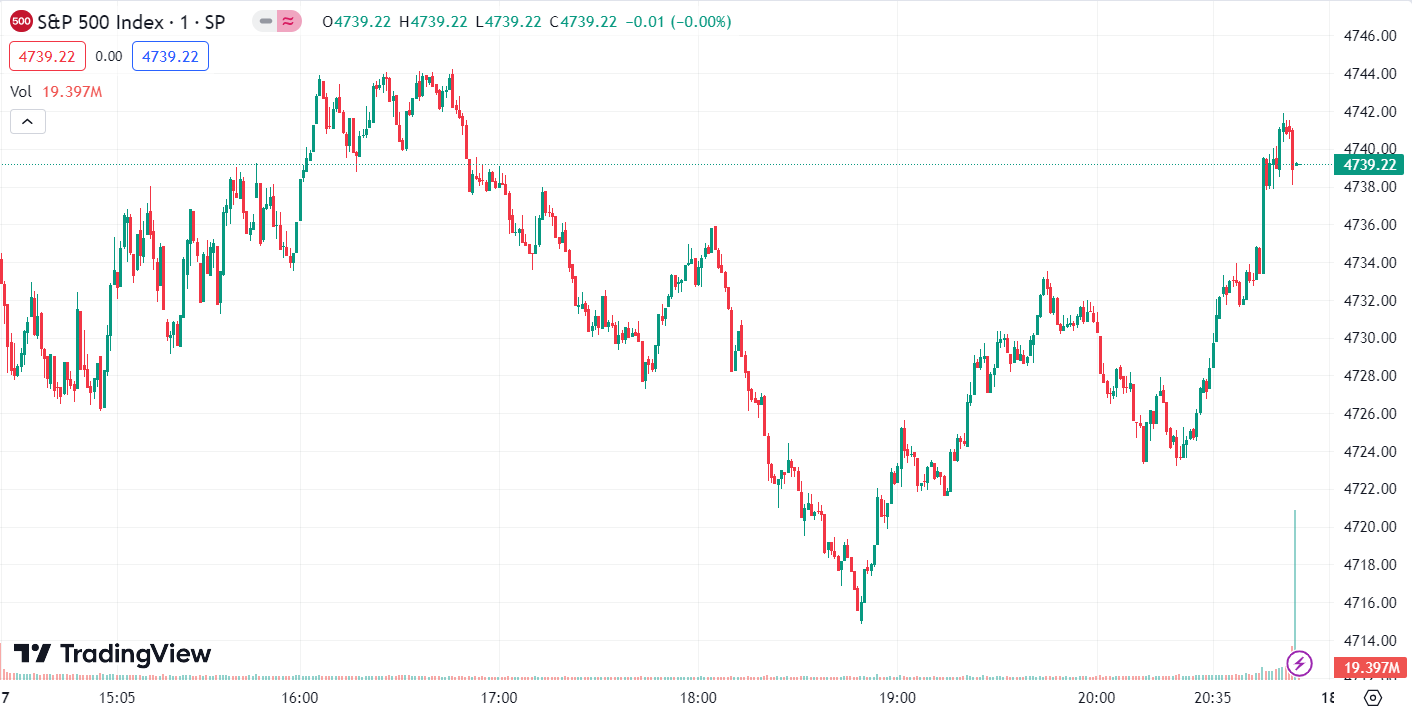 - S&P 500 Index declined 26.77 points, or 0.56%, closing at 4,739.21.