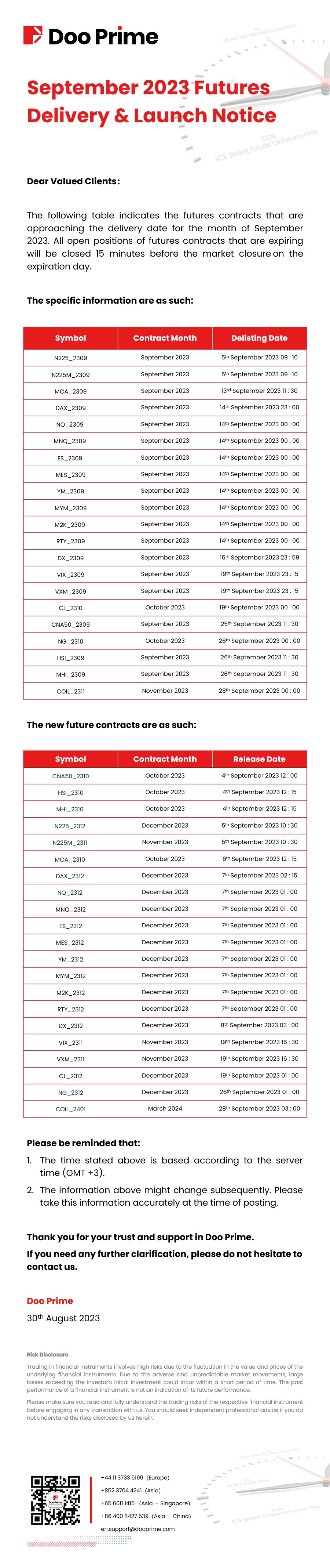 Doo Prime September 2023 Futures Delivery & Launch Notice
