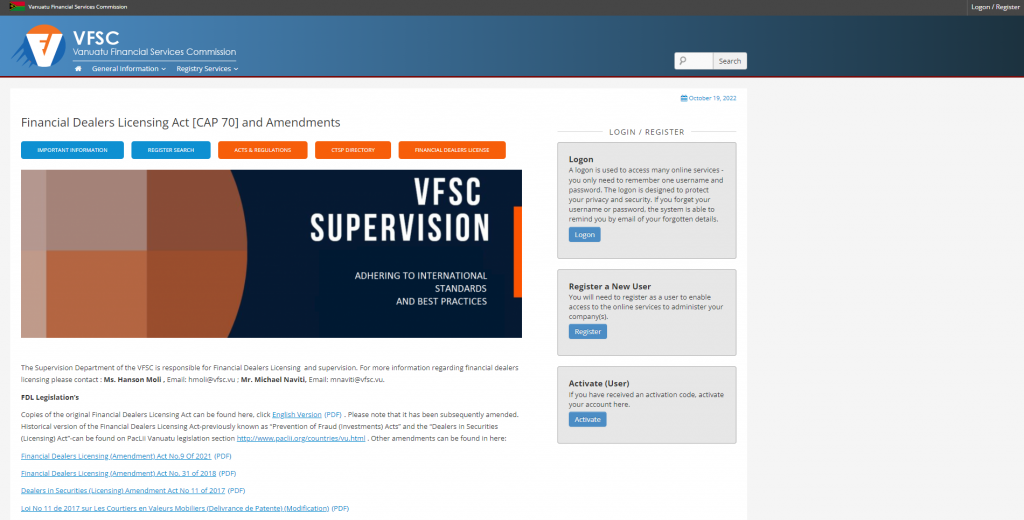 2022-10-20 | Financial regulatory licenses , Vanuatu Financial Services Commission
