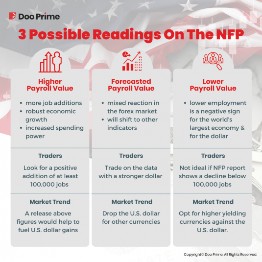 Keep an eye on all of the non-farm payroll reports, forecasts, and updates on DooPrimeNews.com and plan a step ahead on your trades.