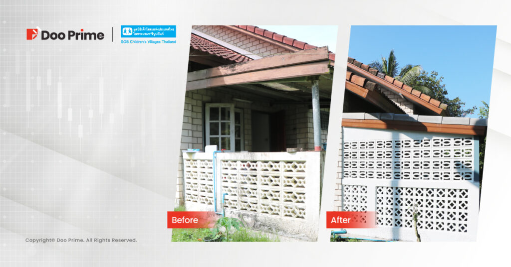 사회적 책임감이 있는 증권사로서 Doo Prime은 항상 자선 및 공익사업에 힘쓰고 있으며 사랑과 포용을 계승하고 있습니다. 이번에 Doo Prime은 태국 SOS 어린이 마을 리모델링 사업을 지원하기 위해 350,000바트를 기부하였으며 보다 많은 어린이들의 일상을 보장하고 그들의 삶의 질을 향상시킬 수 있는 봉사 활동을 진행하였습니다.