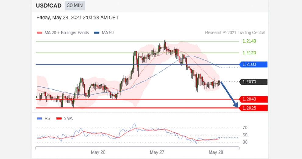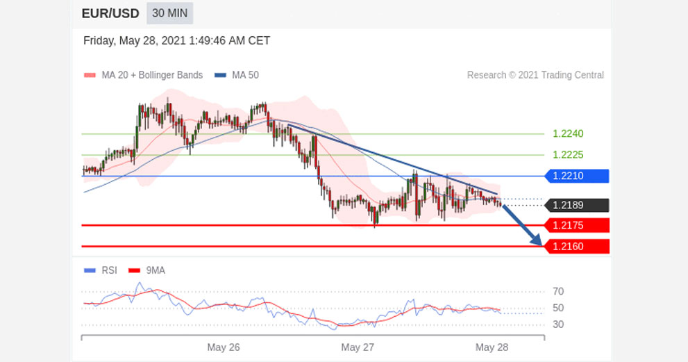 A break below 1.2175 would trigger a drop towards 1.2160.