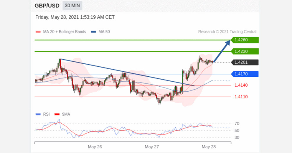 Above 1.4215 look for further upside with 1.4235 & 1.4260 as targets.