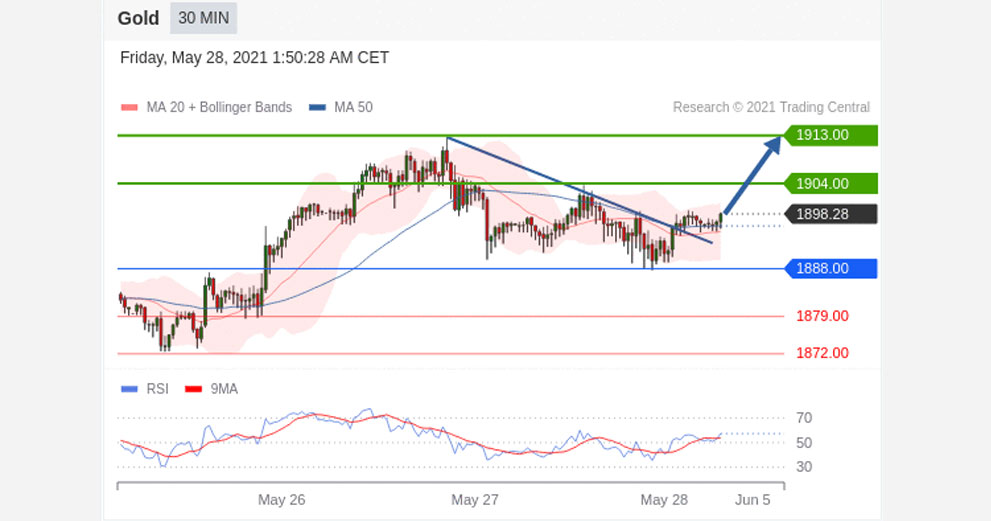Long positions above 1888.00 with targets at 1904.00 & 1913.00 in extension.