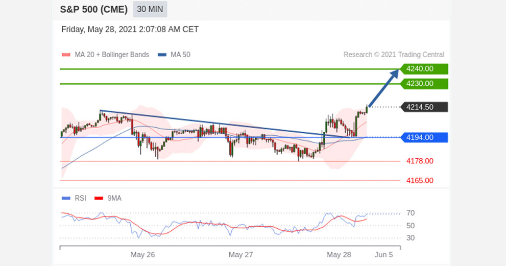 Long positions above 4194.00 with targets at 4230.00 & 4240.00 in extension.