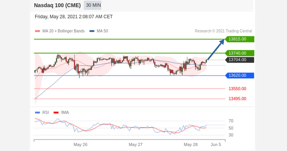 Long positions above 13620.00 with targets at 13740.00 & 13815.00 in extension.