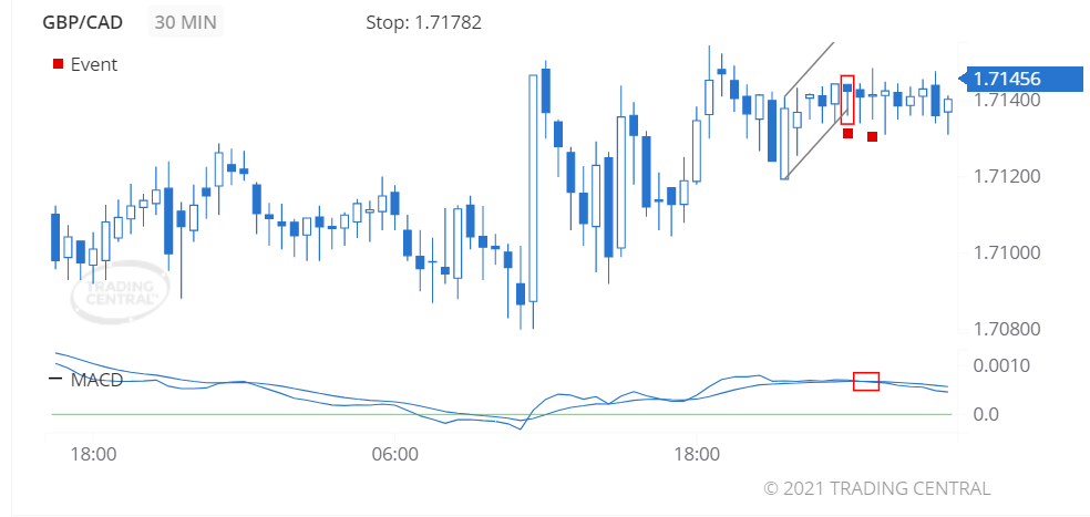 The MACD generated a bearish signal on 2021 May 28 at 01:00 GMT.