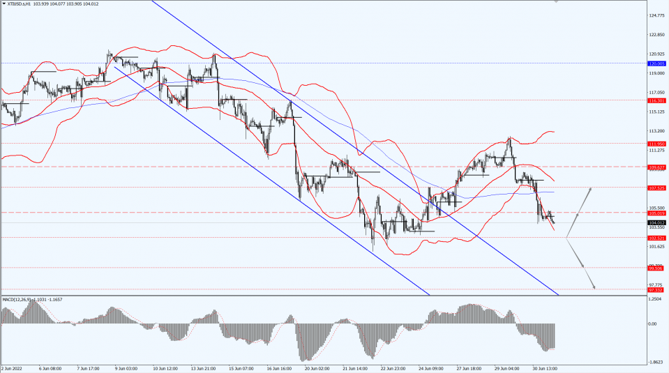 Oil prices focus on the 102.52-line today. If the oil price runs above the 102.52-line, then focus on the suppression strength of the two positions of 105.01 and 107.52. If the oil price runs below the 102.52-line, then pay attention to the support strength of the two positions of 99.50 and 97.33.