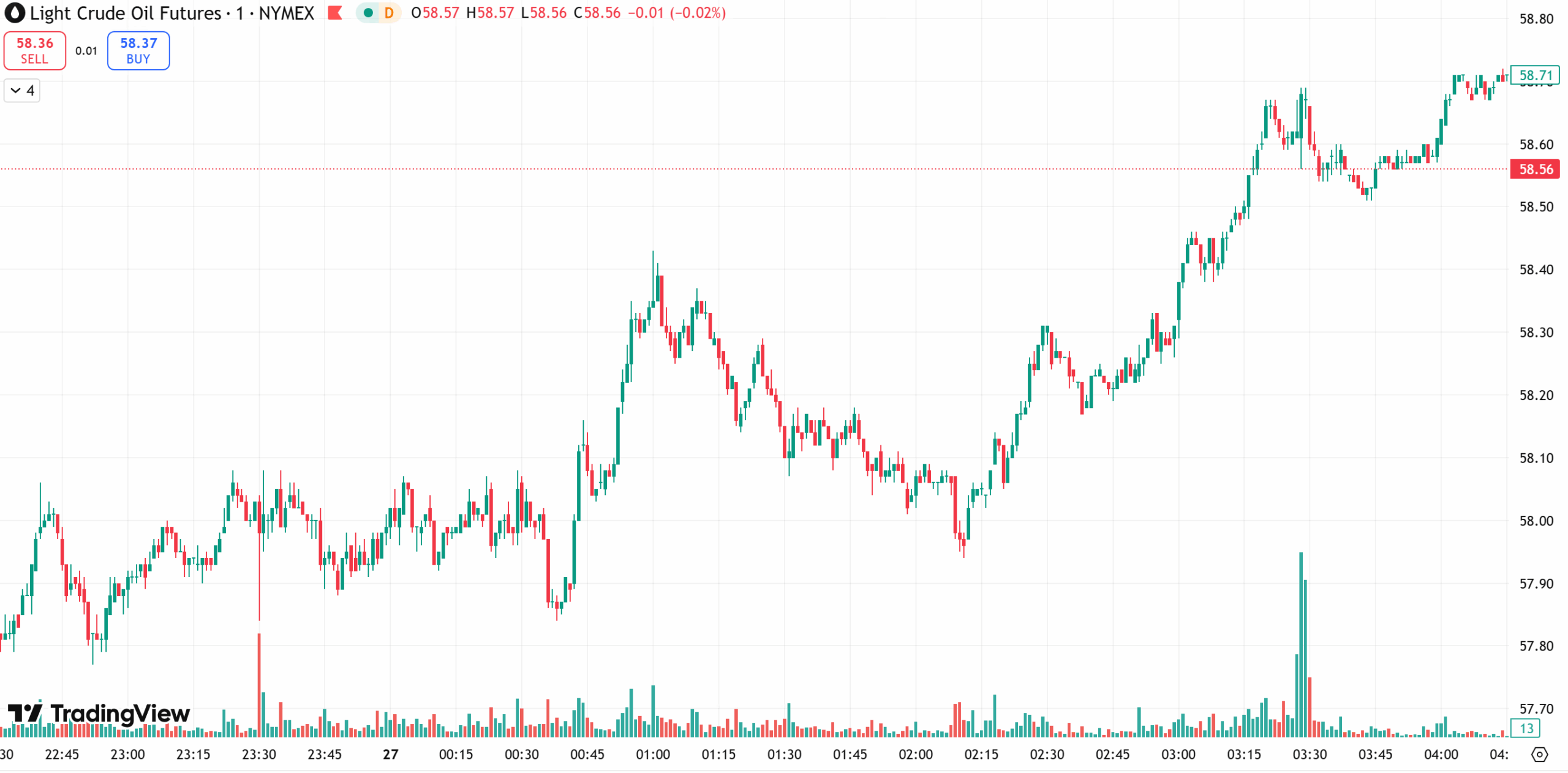 WTI crude traded near 58.50 dollars per barrel, inching up from a one-month low as investors weighed oversupply concerns against progress in Russia-Ukraine peace talks ahead of the Thanksgiving holiday.