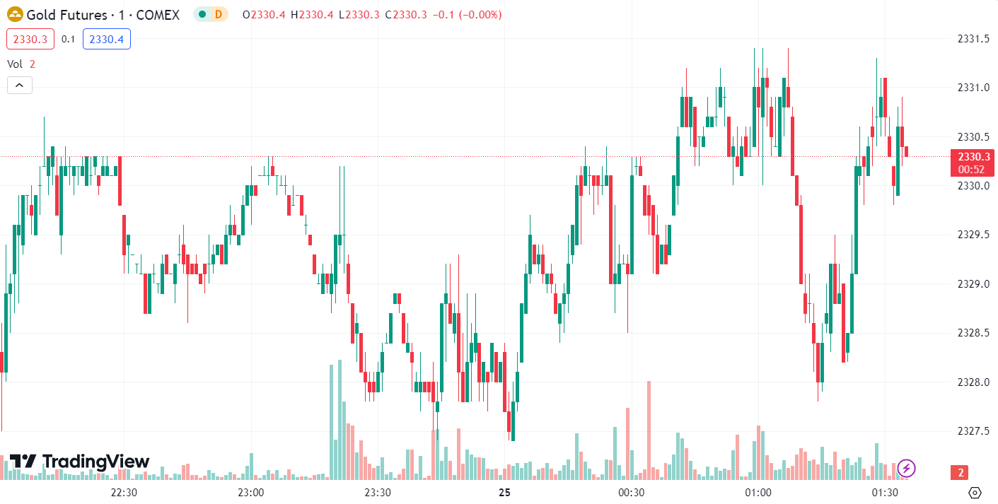 On Wednesday, spot gold maintained volatility, reaching a high of USD 2337 before ultimately closing down by 0.25% at USD 2315.70 per ounce. Investors are closely watching US economic data to be released later this week, which could provide clues to the Federal Reserve’s interest rate hiking path.