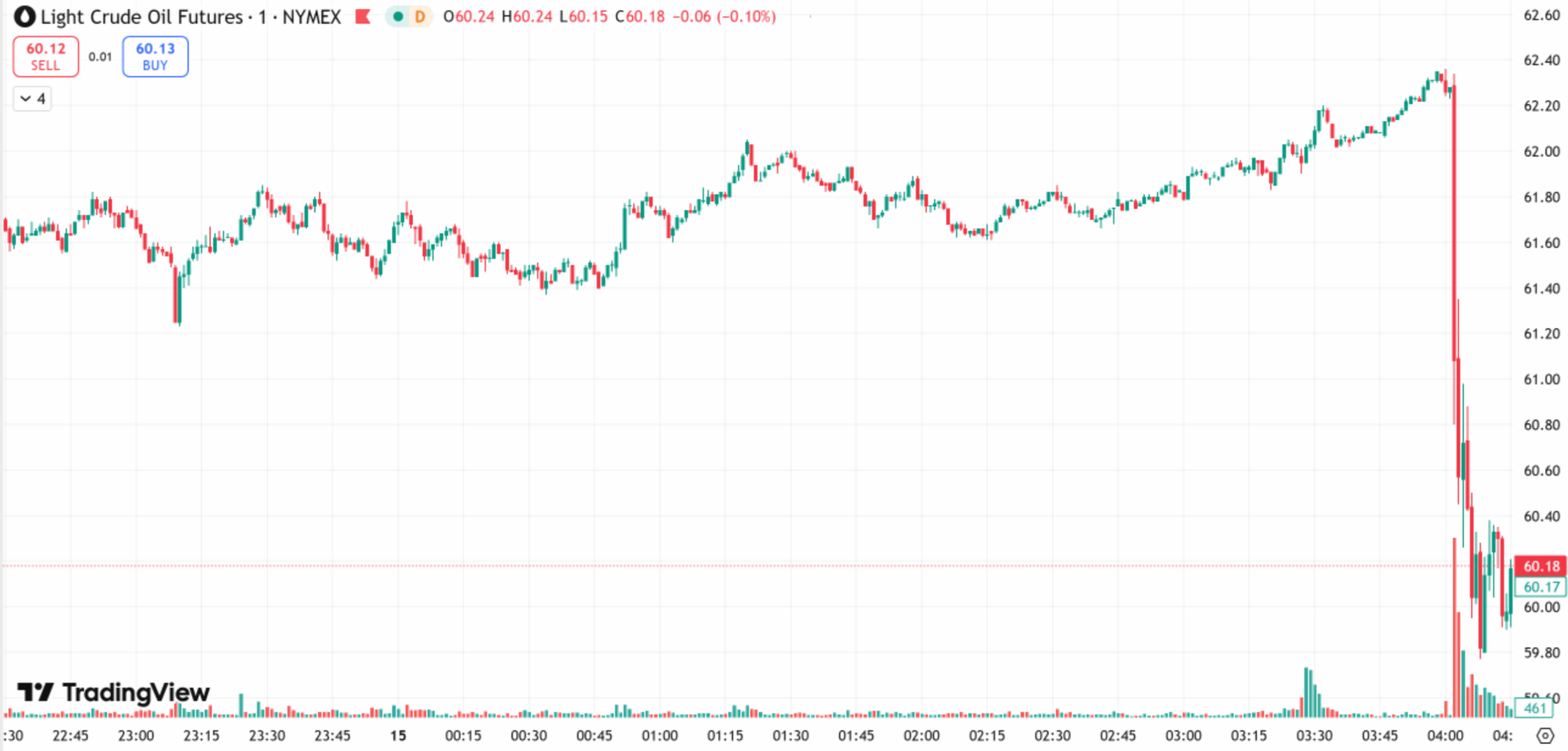 The sharp shift reflected a sudden cooling in geopolitical risk. Price Futures Group analyst Phil Flynn noted that markets quickly reassessed the likelihood of a military escalation, triggering aggressive selling.