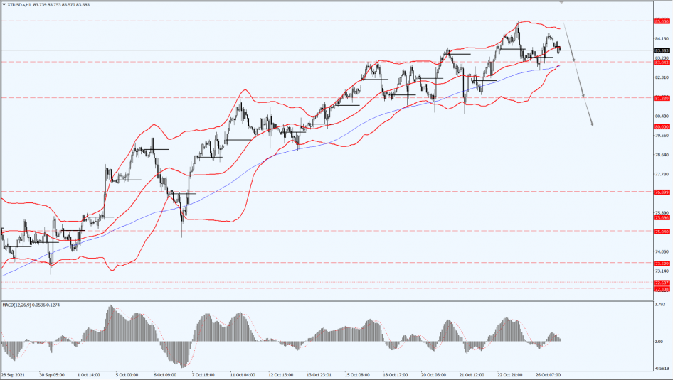 Today, oil prices pay attention to the suppression of the 85-line, and the support levels at 83.04 and 81.33. Once the oil price falls below the 81.33-line, oil prices will open up a further downward space.