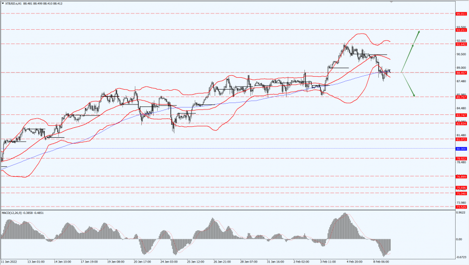 Oil prices focus on the 88.45-line today. If the oil price runs below the 88.45-line, then pay attention to the support of the 85.75-line. If the oil price runs above the 88.45-line, then pay attention to the suppression of the 91.64 and 93.21 positions.