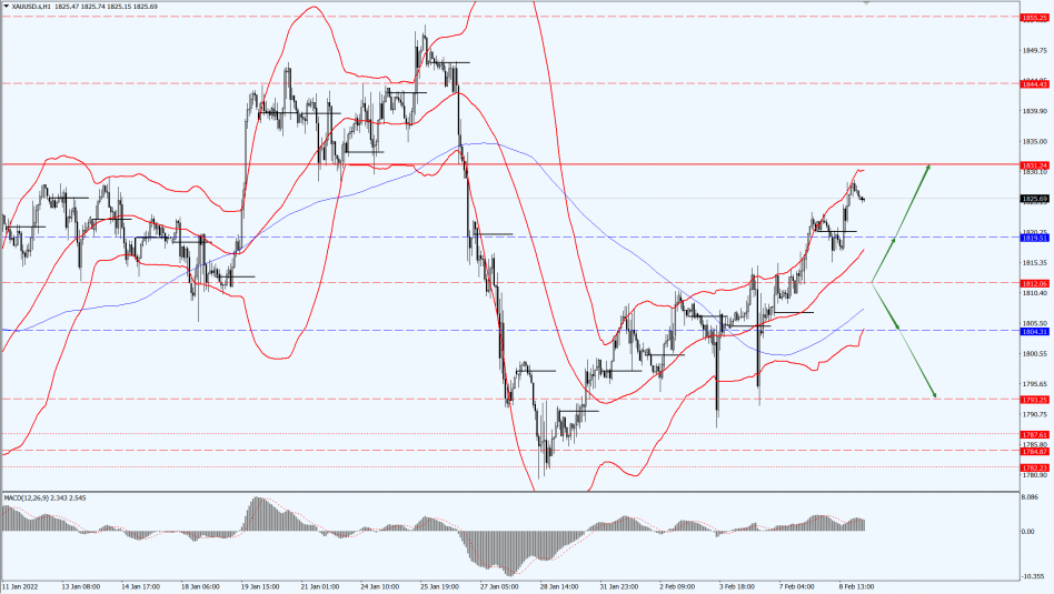 Gold pays attention to the 1812-line today. If the gold price runs steadily above the 1812-line, then it will pay attention to the suppression strength of the 1831 position. If the gold price falls below the 1812-line, it will open up further callback space. At that time, pay attention to the support strength of the 1804 and 1793 positions.