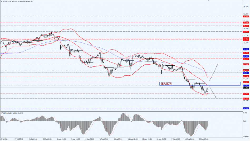 Oil prices today are mainly focused on the suppression of oil prices in the range of 63.35 to 64.01. Once the oil prices break through the 64.01-line of the upper boundary range, further room for a rebound will be opened. At that time, pay attention to the suppression of the two positions at 65.16 and 66.35. If oil prices are slow in breaking through this range, it means that oil prices will fall again. At that time, we will pay attention to the strength of support at 61.72 and 60.77.