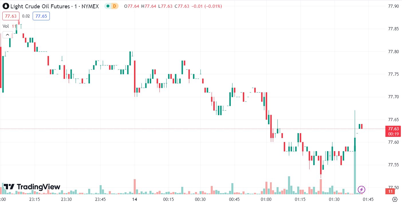 During the late US session, prices retraced once again but stabilized around the USD 76.9 level before experiencing another bullish uptrend and closing higher.