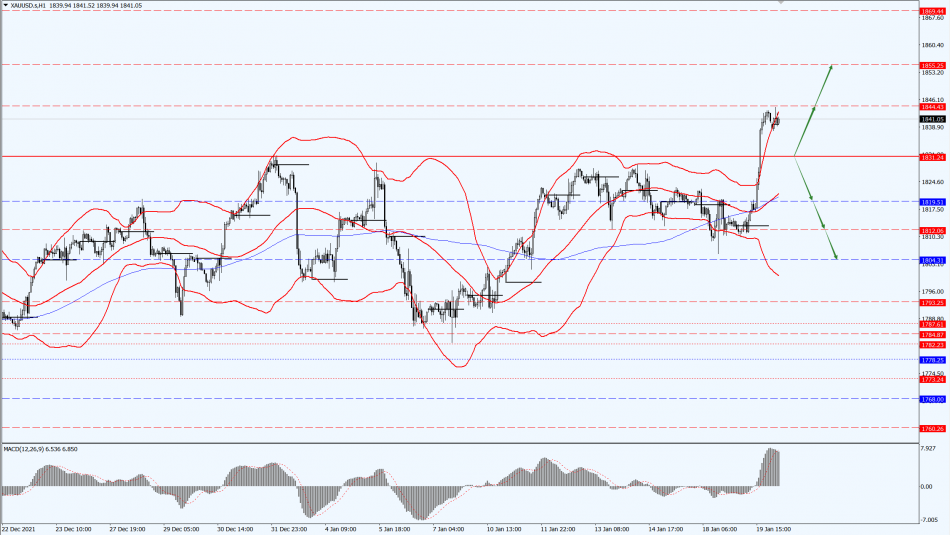 Gold pays attention to the 1831-line today. If the gold price runs steadily above the 1831-line, then pay attention to the suppression strength of the 1844 and 1855 positions. If the gold price falls below the 1831-line, it will open up further callback space. At that time, pay attention to the strength of 1819 and 1804.