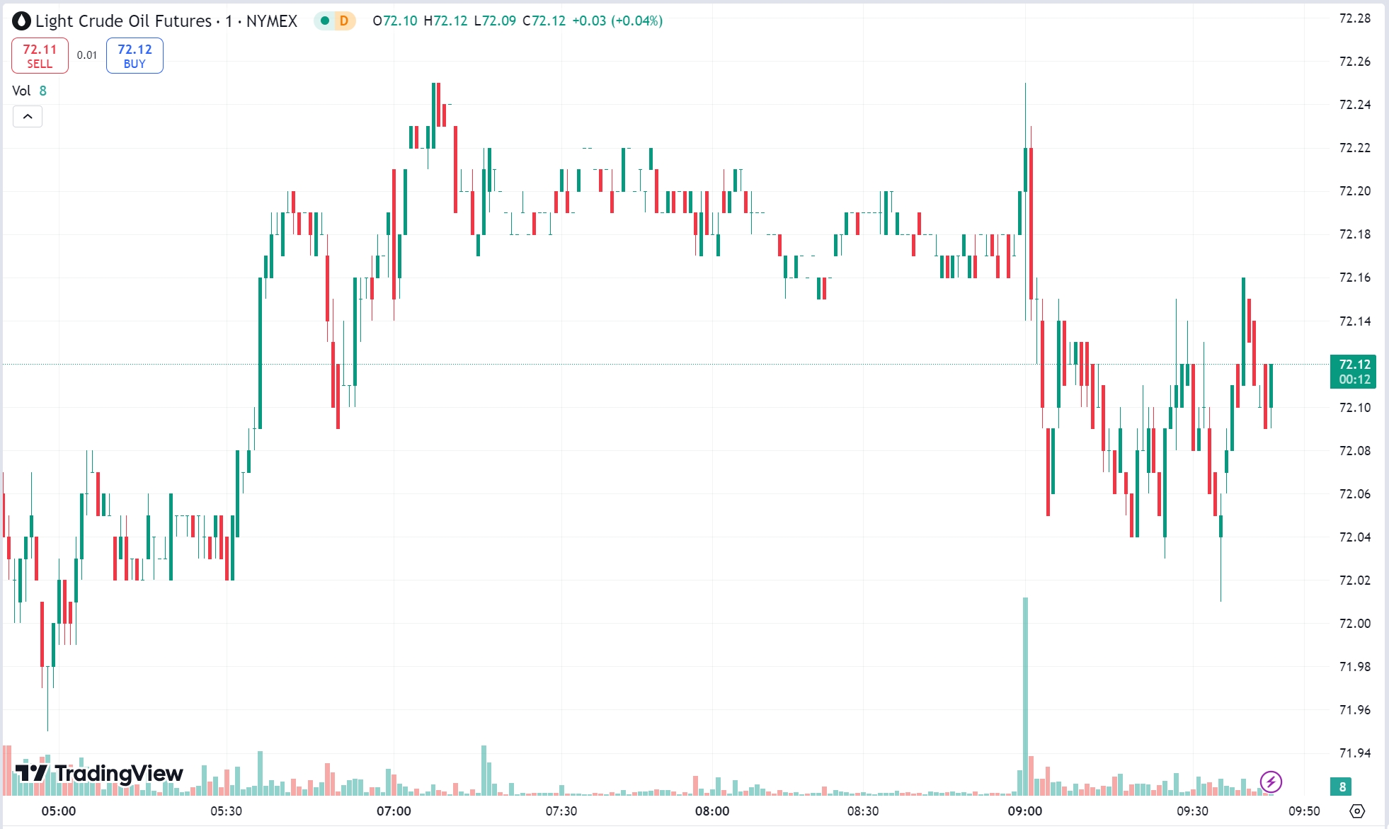 Oil experienced a V-shaped recovery, finding support near $70.7 before rallying to close around $72.8, with a bullish candlestick indicating continued upside momentum.