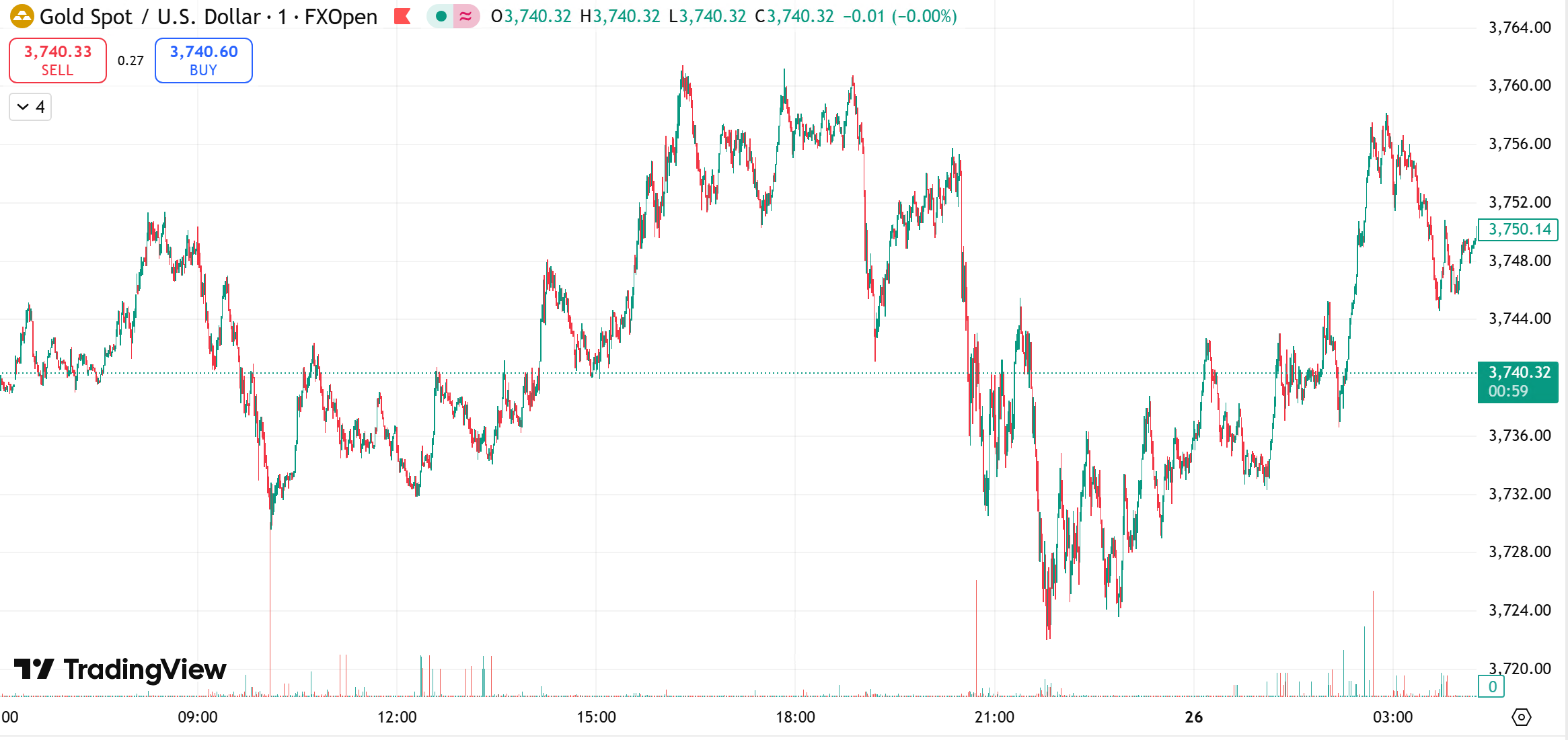 On Friday, gold traded near $3,740.57/oz, narrowing Thursday’s gains after stronger U.S. jobless claims data dampened some dovish Fed bets. Investors are awaiting the PCE inflation report, due later today, which could guide the Fed’s next policy move.