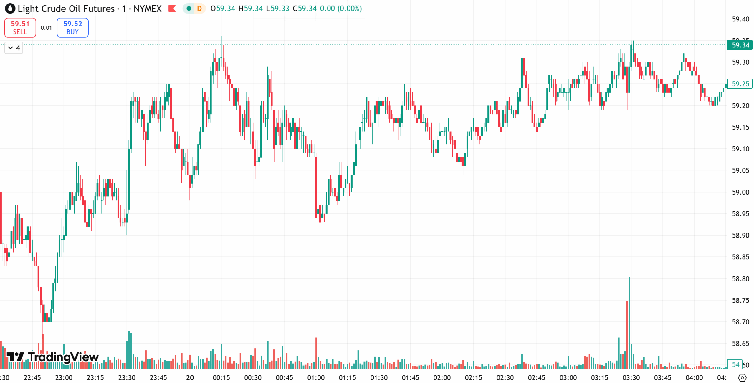 Oil held near 58.89 dollars per barrel as traders weighed worries about global oversupply against the risk of disruptions tied to sanctions on Russia’s Lukoil.