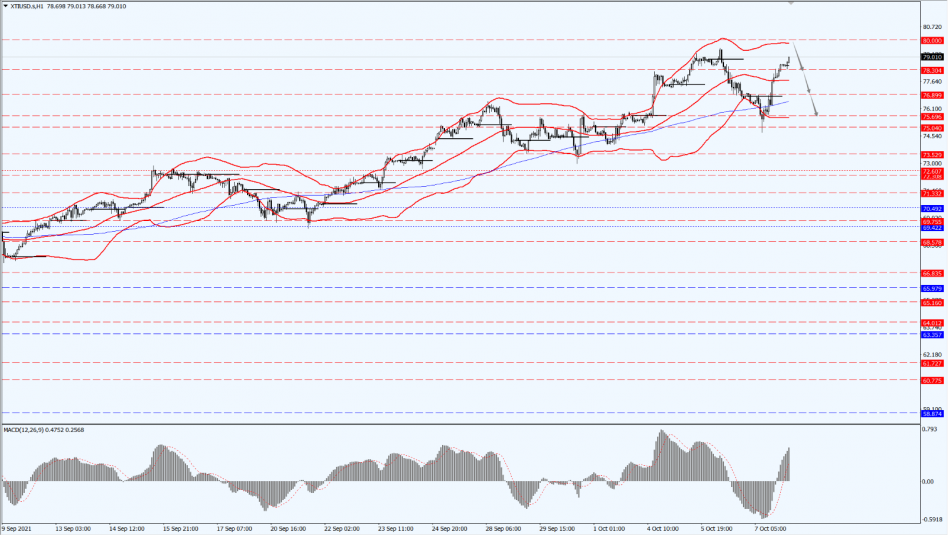 Today, oil prices are focused on the suppression of the 80-line. Once the price rises and falls, the bottom line will focus on the support at 78.30 and 76.89.