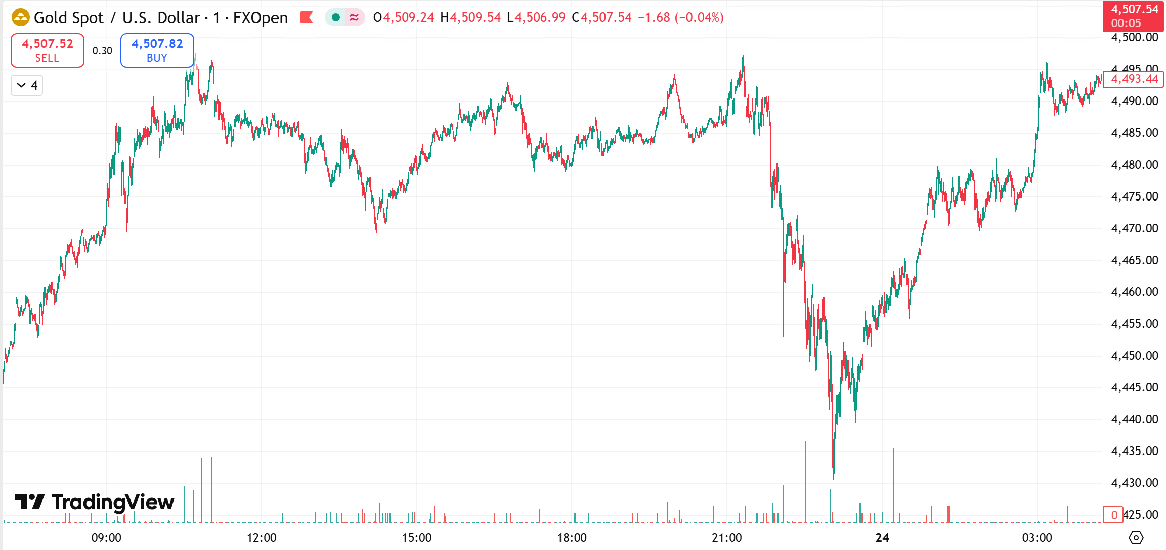 If price action allows, consider buying on a pullback toward $4,430, with a stop near $4,410 and upside targets toward $4,500.