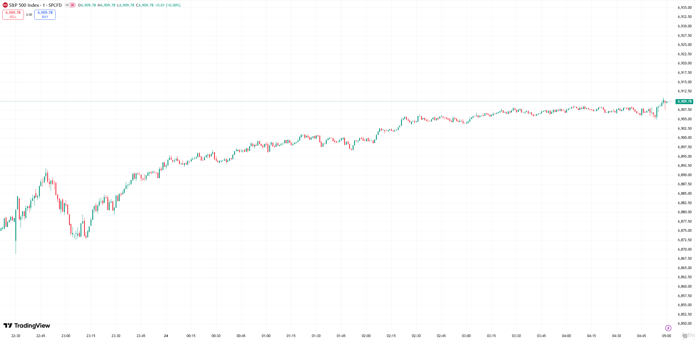 - S&P 500 +31.30 points (+0.46%) to 6,909.79