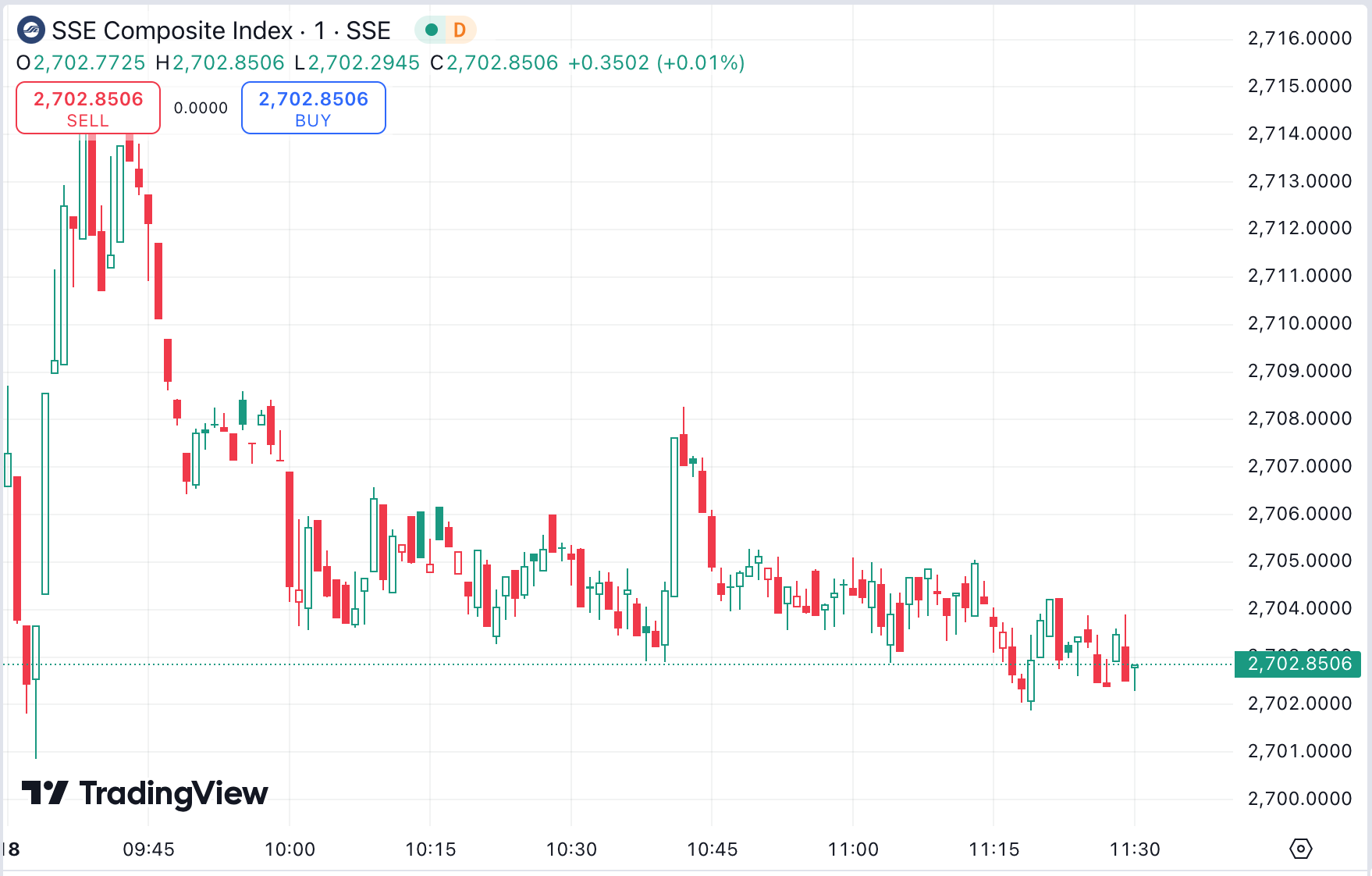 • Shanghai Composite Index: Down 0.05% to 2,702.85