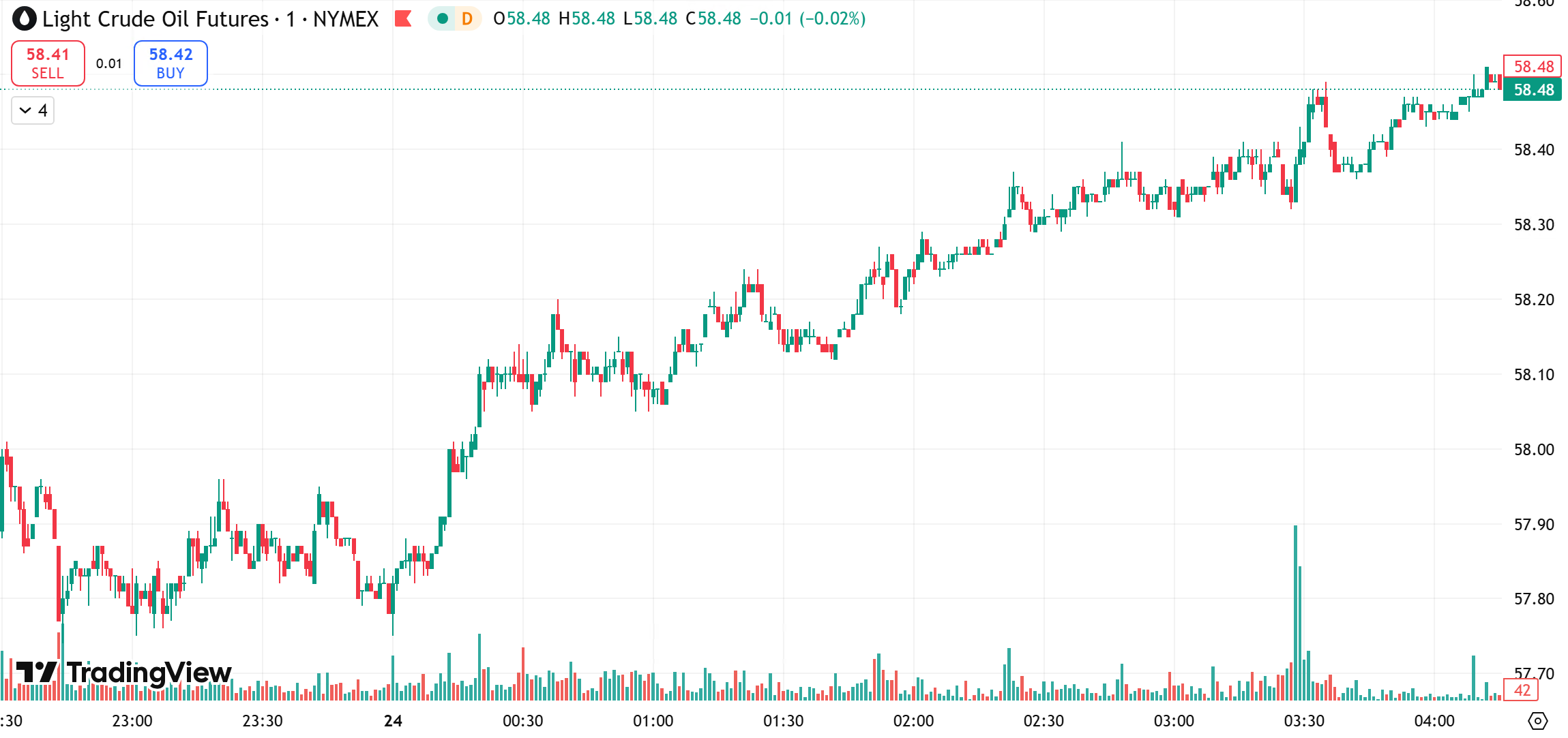 周三,周二现货黄金交投于 4491 美元/盎司付近,避险情绪、美元走软预期及利率下降预期提供助力,金价逼近 4500 美元/盎司大关,美原油交投于 58.47 美元/桶,油价周二延续上涨势头,市场正同时权衡美国强劲经济数据带来的需求前景与委内瑞拉、俄罗斯等地缘政治风险引发的供应中断担忧。