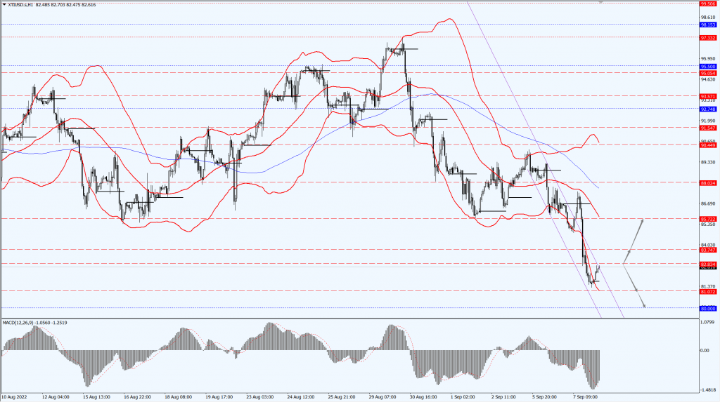 - 如果油价运行于 82.83 一线下方,届时关注 81.07 和 80 位置的支撑力度。