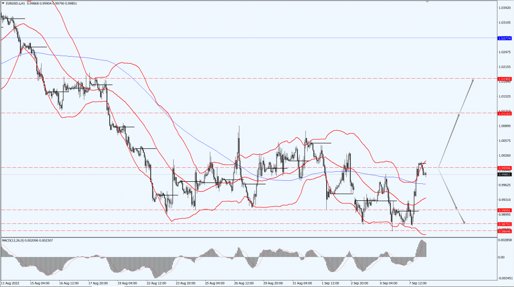 - 如果欧元运行于 0.9999 一线下方,届时关注 0.9909 和 0.9879 的支撑力度;