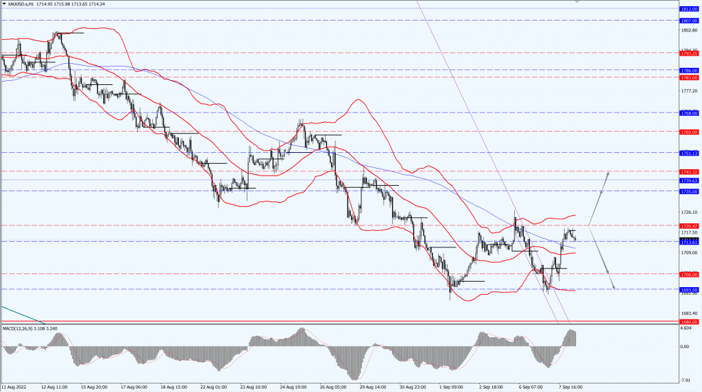 黄金今日关注 1720 一线,