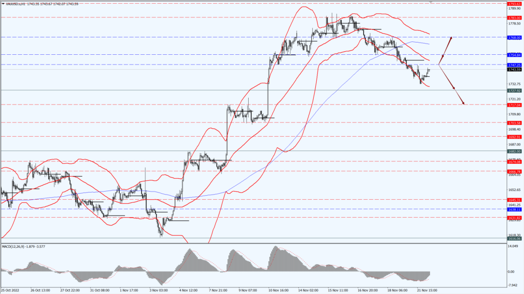 - 如果金价运行于 1747 一线下方,届时则关注 1727 和 1717 两个位置的支撑力度;