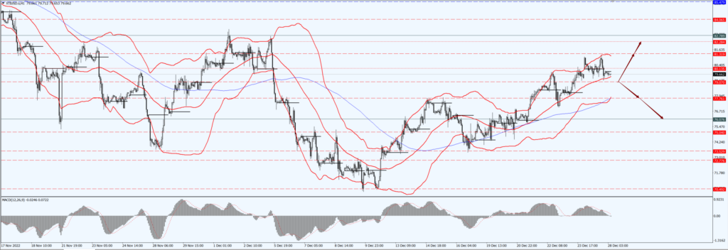 - 如果油价运行于 79.07 一线下方,届时关注 77.76 和 76.07 两个位置的支撑力度。