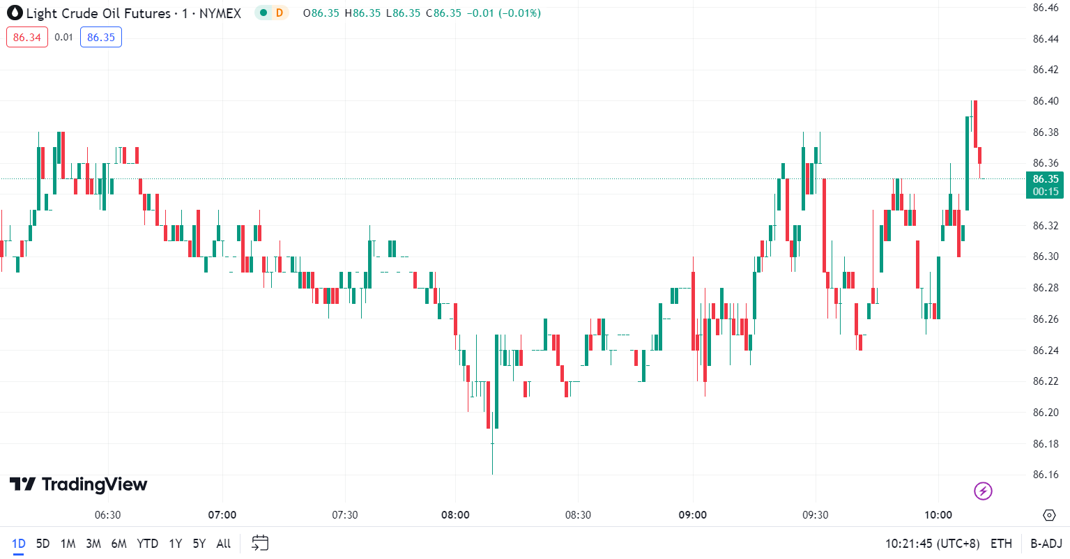 昨日油价技术面在震荡交投中延续宽幅震荡区间,亚欧盘价格小幅反弹回升至76关口承压回落迅速下行走跌,晚间美盘加速向下击穿 85 关口到达 84.5 一线企稳回升,晚间美盘快速破底反抽重回 86 关口上方强势收盘,日k线报收探底回升震荡中阳,整体价格日内深度回踩确认 84.5 一线支撑有效再度形成多空宽幅震荡运行节奏。