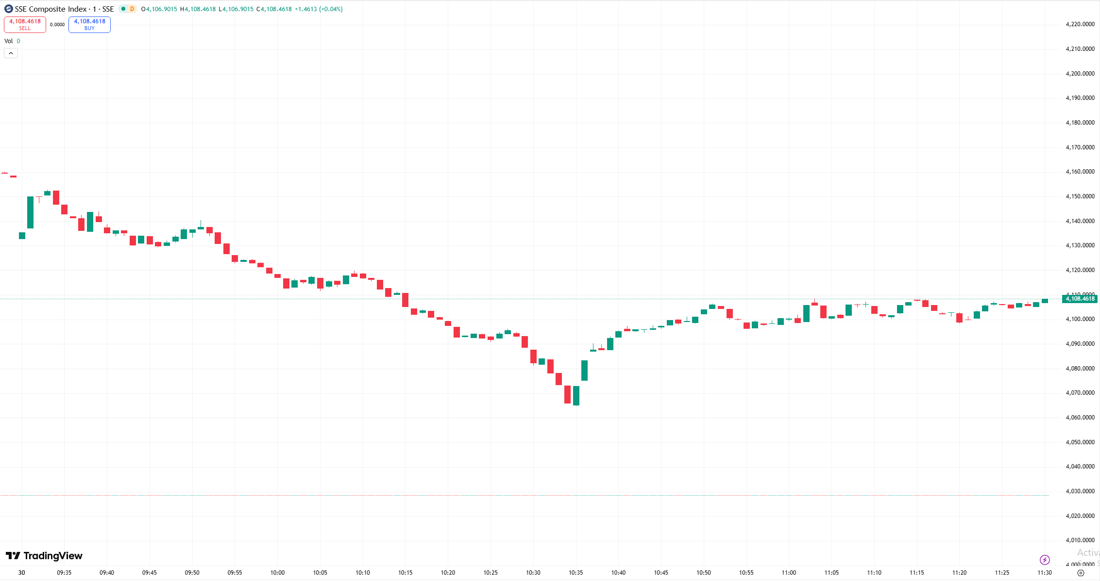 A 股三大指数早盘涨跌不一,截至午盘,沪指跌 1.19%,深成指跌 0.96%,创业板指涨 0.8%,北证 50 指数涨 0.18%,沪深京三市半日成交额 19514 亿元,较上日缩量 836 亿元。全市场超 3800 只个股下跌。