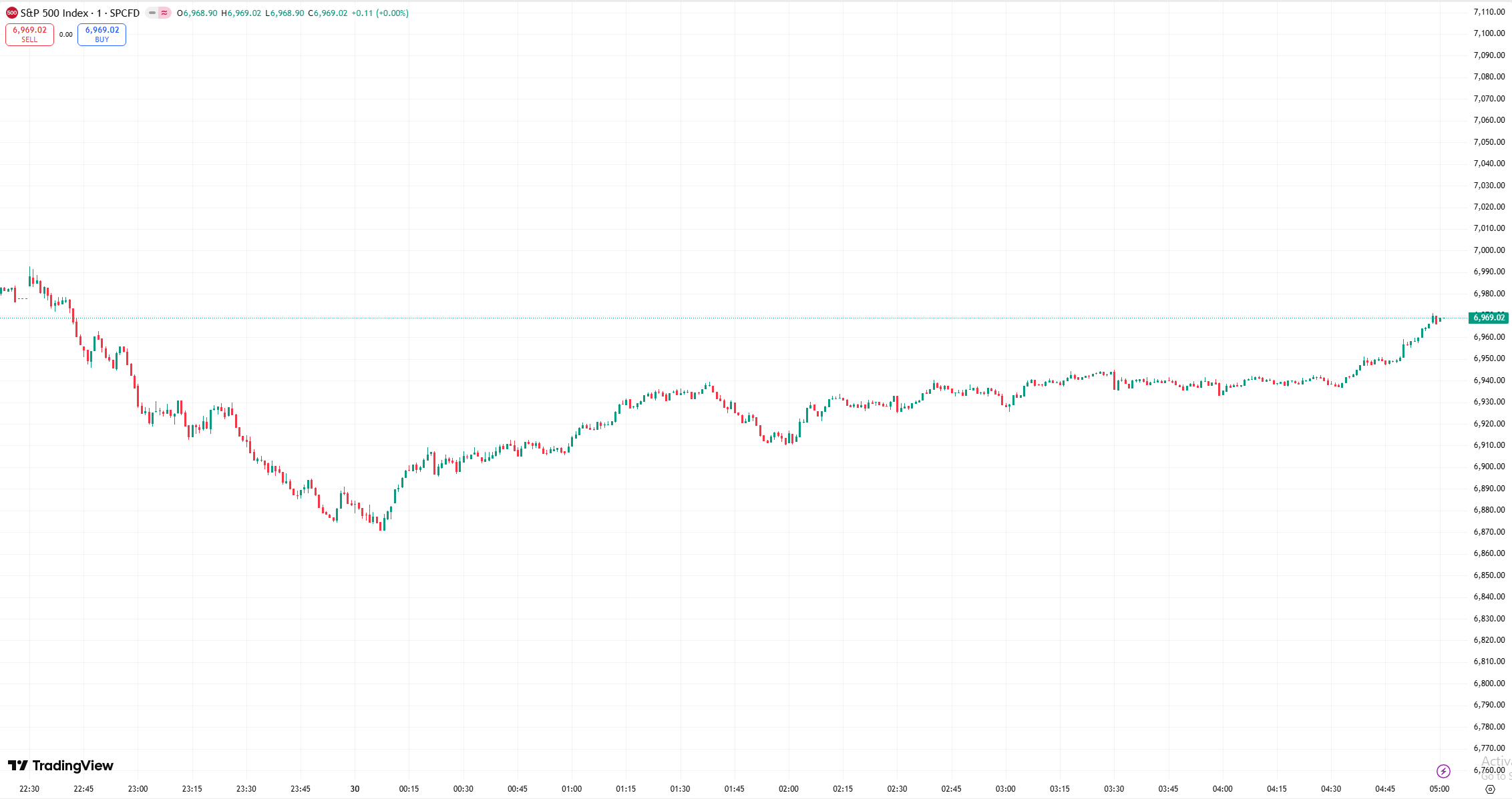 - 标普 500 指数跌 9.02 点,跌幅为 0.13%,报 6969.01 点