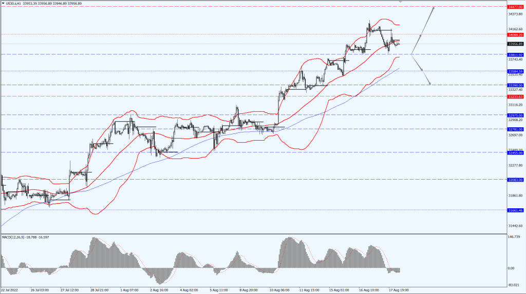 - 如果道指稳定运行于 33811 一线上方,届时关注 34088 和 34477 两个位置的压制力度;