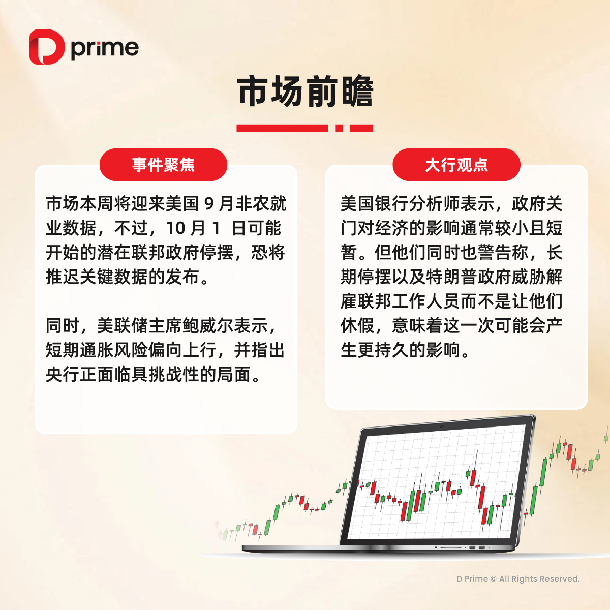 本周四将迎来美国 9 月非农就业数据,不过,10 月 1 日可能开始的潜在联邦政府停摆,恐将推迟关键数据的发布。还有哪些大事值得关注?下方图片速览: