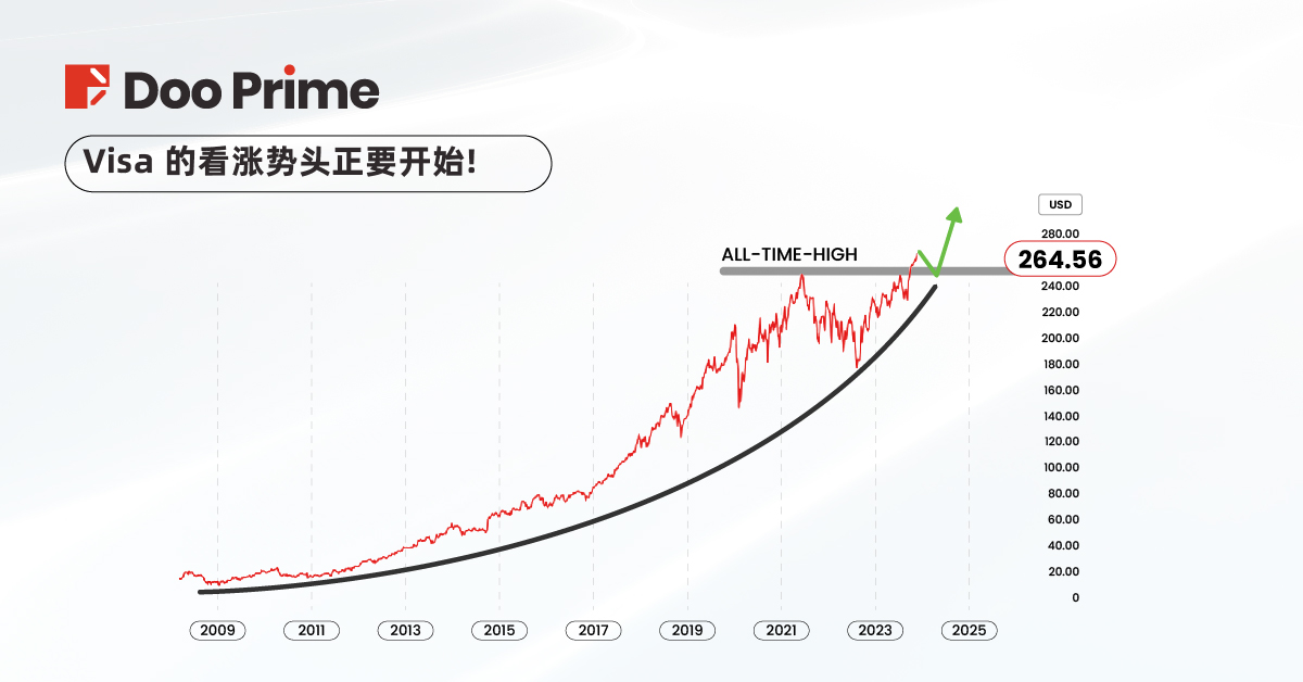 从技术面来看,Visa 的股价目前处于历史新高。理想情况下,回调至 250-240 或许是买入并长期持有的好时机。