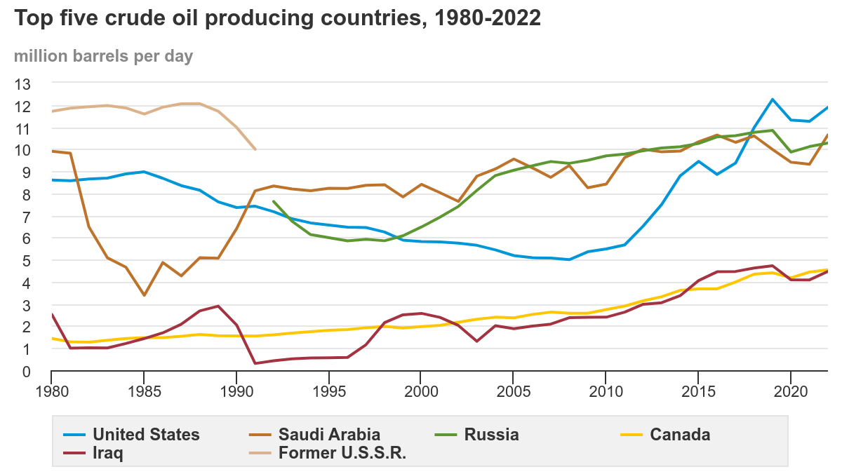 其次从地理上看,很多人可能不知道,当前世界上最大的产油国是谁。