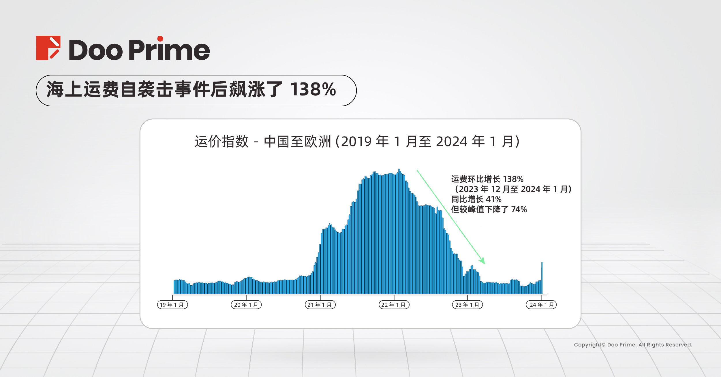 红海局势对经济的影响正在全球蔓延,尤其在供应链中产生了多米诺骨牌效应,使得全球贸易陷入紧张局势。根据 Bernstein 的数据显示,自袭击事件爆发后,运费大幅上涨了 138%。自 12 月初以来,运费增长了两倍,其中关键航线的运费增长了三倍。
