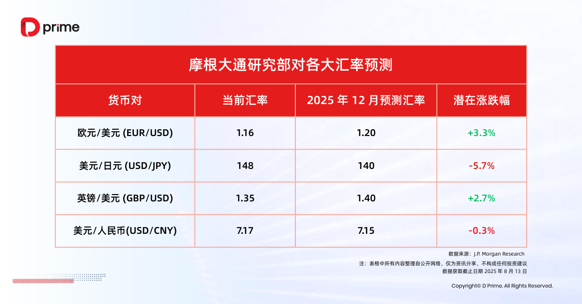 从当前因素来看,市场分析普遍认为,美元疲软走势有可能延续至 2025 年第四季度。不过,美元的中期趋势并非单向下行,随着关税不确定性逐步消退,有望在未来数个月为美元提供一定的支撑动力。