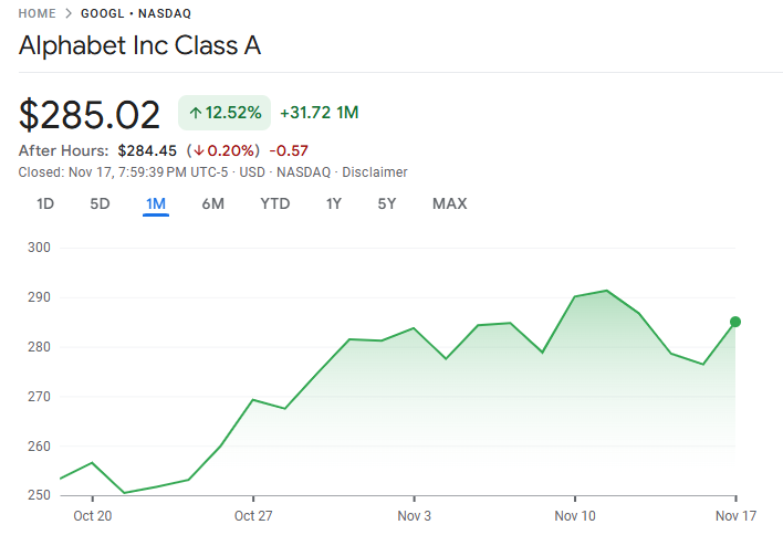 11 月 17 日美股开盘后,谷歌母公司 Alphabet 股价上涨 5.5%,市值首次突破 3.5 万亿美元,再创历史新高。根据最新披露,伯克希尔·哈撒韦在第三季度斥资 49.3 亿美元买入 Alphabet 股票,使其跻身该机构前十大美股持仓。市场普遍认为,巴菲特此举代表其认可谷歌在人工智能战略及稳健盈利方面的长期潜力。
