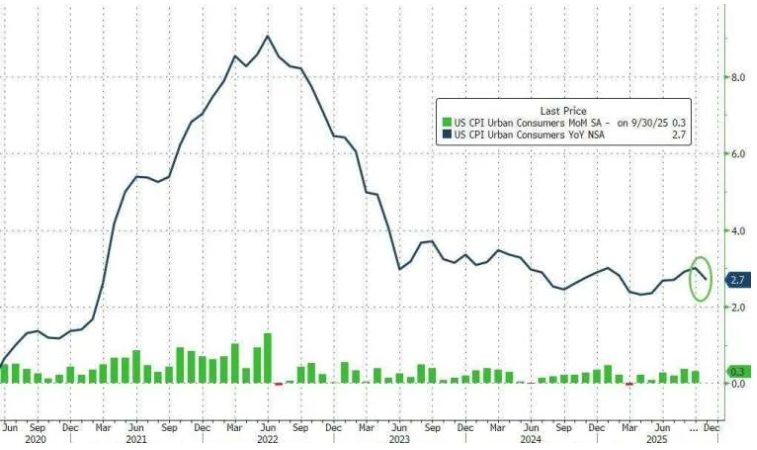 12 月 18 日至 19 日,美国政府因长期关门影响到经济数据的正常采集,最新公布的 11 月核心消费者物价指数 (CPI) 年增率意外降至 2.6%,创下 2021 年以来新低。但这一“降温”结果引发经济学界广泛质疑。